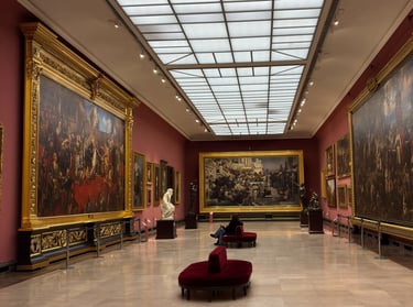 I’m standing in front of the interior frescoes of Schloss Schönbrunn in Vienna. The walls and ceilings are richly decorated, with detailed ornaments and vibrant colors that showcase the artistic mastery of the era. Every detail draws the eye and tells the story of the palace.