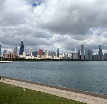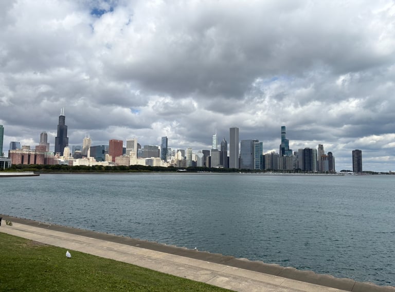 Near Adler Planetarium’s Skyline Walk, with a full view of Downtown Chicago stretching out before me.