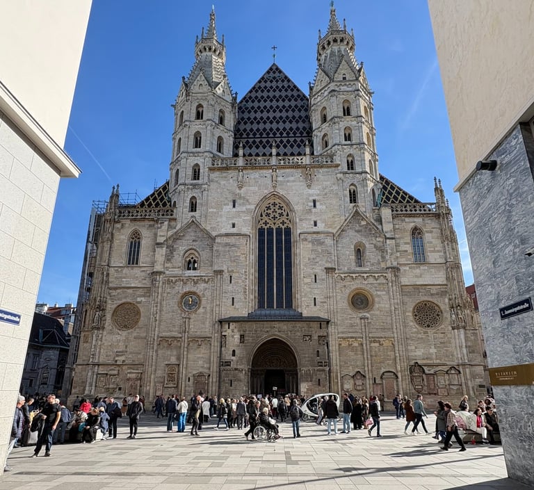 As soon as I arrived at Stephansplatz, I was immediately struck by how enormous St. Stephen's Cathedral is. You can tell from the photo: the people underneath seem tiny. Seen up close, it's truly impressive, one of the most beautiful images I brought back from Vienna.