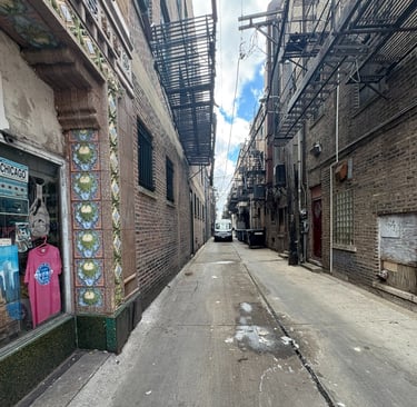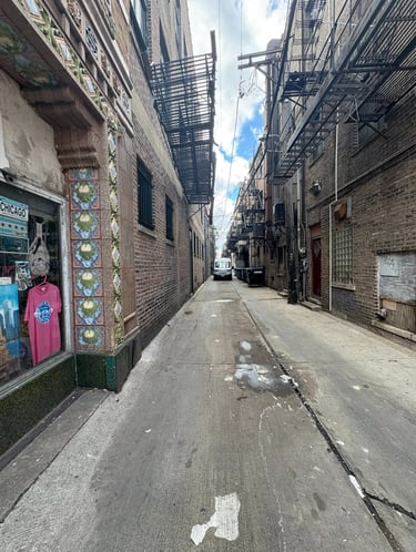 Even if this photo doesn’t show one of Chicago’s best spots and isn’t particularly stunning on its own, I was fascinated by this rougher side of the city. The narrow, deserted street in downtown is lined with huge brick apartment buildings. Fire escapes run along the facades, giving it a cinematic vibe, with shadows and typical American urban architecture.