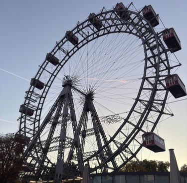 The 65-meter-high Giant Ferris Wheel in Vienna was built in 1897 to celebrate the 50th anniversary of the reign of Franz Joseph I.