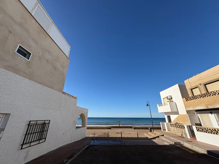 Cabo de Gata: the sea at the back and the typical local houses on the sides.