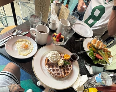 I’m sitting with friends in a restaurant near Downtown Chicago, enjoying a hearty American breakfast. The weather outside isn’t great, but with good food and company, the stay is still enjoyable.