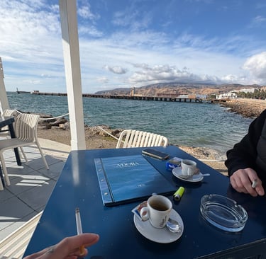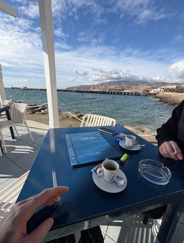 Sitting at a beach bar on Playa del Zapillo, in Almería. In front of me, the calm sea, a freshly finished coffee, and time slowing down.